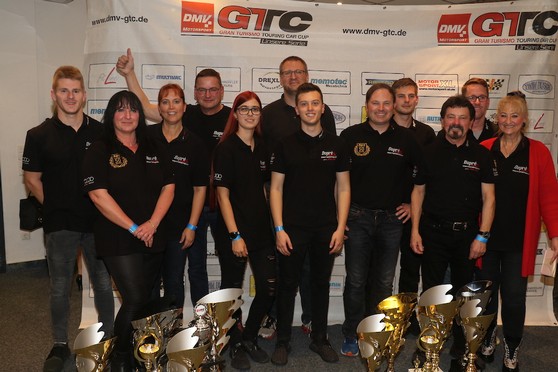 Es sollte im DMV GTC noch einiges hinzukommen, denn in den beiden 30-Minuten-Sprints schnitten die beiden wie immer exzellent vorbereiteten Dupré-Porsche ebenfalls gut ab. Im ersten Qualifying des DMV GTC, das wie immer die Startreihenfolge vor dem ersten Rennlauf festlegte, hielt sich die Dupré-Doppelspitze taktisch klug zurück und überließ Christof Langer den Platz an der Sonne. Christoph Dupré, mit seinem 41. Geburtstag vor Augen, reihte sich auf dem zweiten Rang ein, Jacob Erlbacher folgte an dritter Stelle. Im ersten Durchgang blieb es bei dieser Reihenfolge: In geschlossener Formation kamen die Porsche 911 GT3 Cup der drei Erstplatzierten auf dem elften, zwölften und dreizehnten Platz in der Gesamtwertung ins Ziel. Nach dem Zeittraining vor dem zweiten Heat, das stets am Samstagmorgen kurz nach neun Uhr abgehalten wird, sah es zunächst nach einer Doublette des Ergebnisses im ersten Lauf aus. Dann jedoch stellte sich die ursprüngliche Reihenfolge vollends auf den Kopf: Youngster Erlbacher eilte nun voraus, während Christoph Dupré sowie dessen Quasi-Namensvetter – die Schreibweisen beider Vornamen unterscheiden sich minimal – Christof Langer auf den weiteren Rängen folgten. Die Konsequenz in der Jahres-Endabrechnung des DMV GTC: Mit der Startnummer #1 errangen Christoph Dupré und Jacob Erlbacher hinter Timo Scheibner im Aston Martin Vantage GT3 die Vizemeisterschaft 2019 – und nahmen am Abend bei der Meisterfeier im altehrwürdigen Hotel Motodrom weiteres Edelmetall im Überfluss entgegen. Obendrein feierte Christoph Dupré, geboren am 20. Oktober 1978, in der Nacht zum Sonntag in seinen Geburtstag hinein – ein Saarländer Familienteam im Freudentaumel.